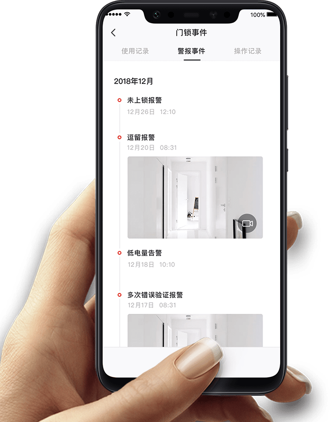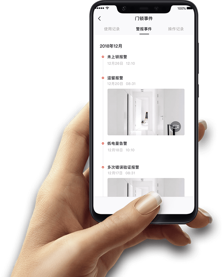 智能門鎖再升級,訪客靠近觸發門鈴指示燈,按下門鈴即刻開啟視頻錄制并發送通知到用戶手機,接聽后進行實時視頻通話。安全就應眼見為實。